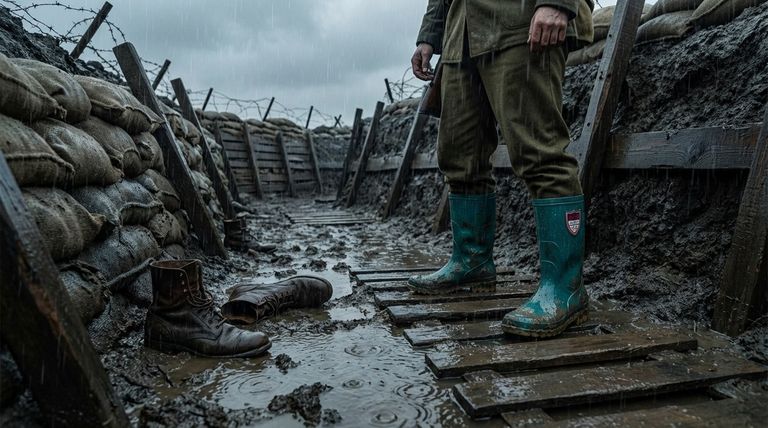 제1차 세계 대전은 현대 웰링턴 부츠의 정체성을 단련한 도가니였습니다. 이 부츠는 귀족적 기원을 벗겨내고 산업 규모 전쟁의 필수 도구로 재활용하여 실용적이고 보호적인 신발로서의 명성을 영원히 굳혔습니다.