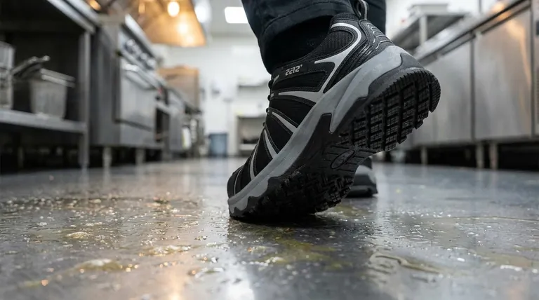 본질적으로, 미끄럼 방지 신발은 단 하나의 중요한 목적, 즉 접지력을 극대화하고 미끄러운 표면에서의 낙상을 방지하기 위해 설계된 고도로 전문화된 도구입니다. 특정 재료와 밑창 패턴으로 제작되어 젖거나, 기름지거나, 기타 위험한 바닥에서 안전하게 고정되도록 하여 많은 직업 환경에서 필수적인 안전 장비입니다.