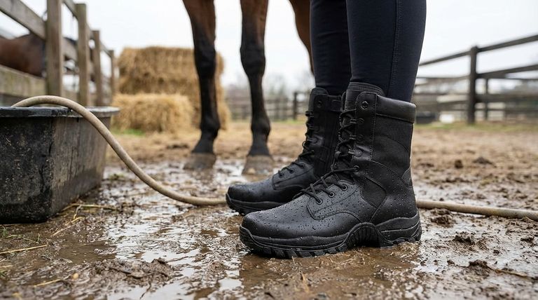 비가 오거나 진흙탕인 조건에서 자주 승마하거나 작업하는 경우, 인조 부츠가 명확한 승자입니다. 물을 흘려보내고 빨리 건조되는 능력은 젖은 가죽 부츠를 괴롭힐 수 있는 재료 열화와 불편함을 방지합니다.
