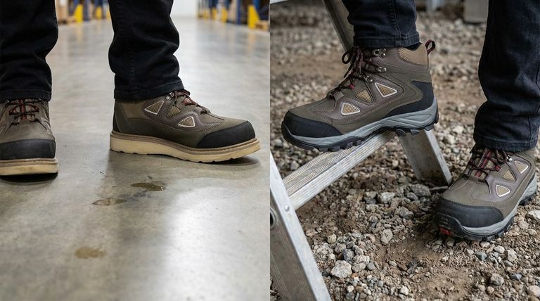 - 주요 초점이 사다리, 비계 또는 고르지 않은 야외 지형인 경우: 힐 밑창은 안정성을 위한 더 안전하고 효과적인 선택입니다.