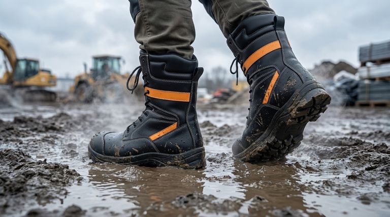 재료(네오프렌)와 부츠의 전체 구조를 구별하는 것이 중요합니다. 강철 토캡, 구멍 방지 중창 또는 전기 위험 등급과 같은 안전 기능은 추가 구성 요소입니다.