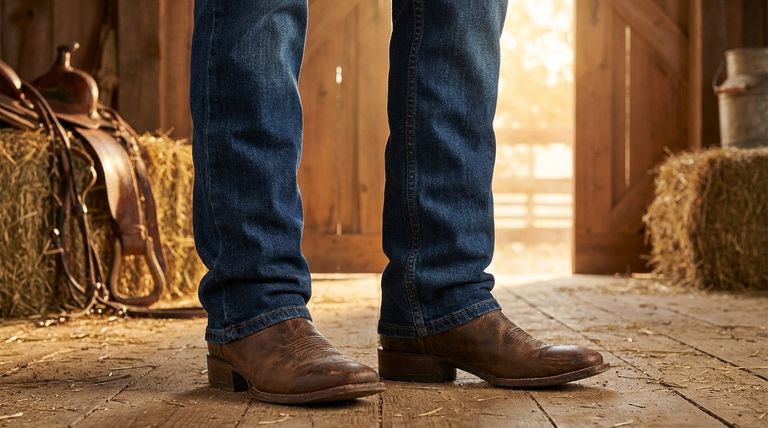 카우보이 부츠와 함께 입는 청바지의 이상적인 핏은 테일러드된 형태와 기능적인 편안함의 균형입니다. 청바지는 깔끔한 실루엣을 만들기 위해 엉덩이와 허벅지 부분을 잘 맞아야 하지만, 무릎 아래로는 약간 여유가 있어야 합니다. 이렇게 하면 데님이 부츠 샤프트 위로 뭉치거나 너무 조이지 않고 자연스럽게 떨어져 의도적이고 자연스러운 룩을 연출할 수 있습니다.