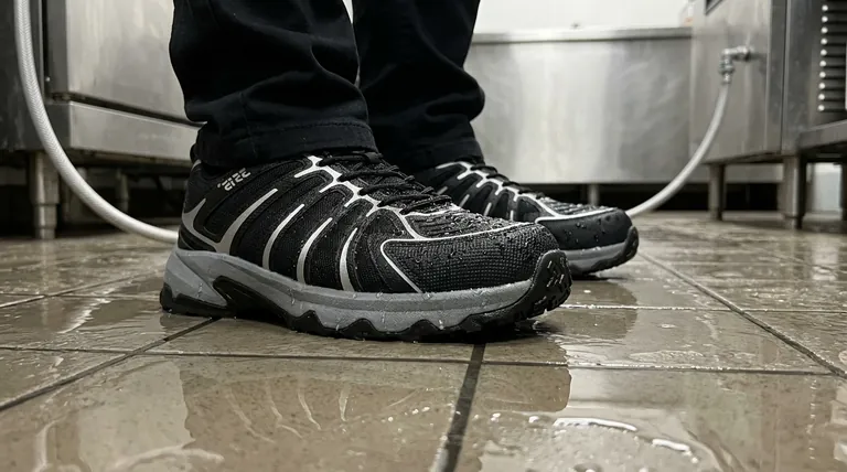 미끄럼 방지 신발의 진정한 가치는 바닥에서의 접지력뿐만 아니라 발을 위한 안정적이고 보호된 환경을 만드는 능력에 있습니다. 발수성은 외부 유출수가 내부 안전 위험으로 이어지지 않도록 보장하는 해당 환경의 중요한 부분입니다.