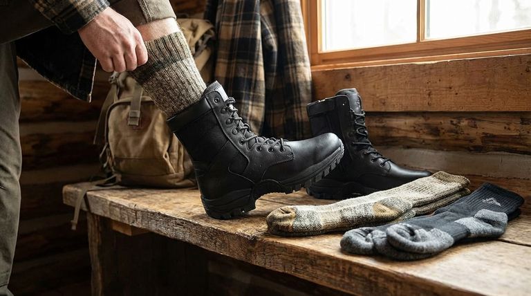 - 시즌 초반 또는 활동적인 사냥이 주 목적이라면: 품질 좋은 중간 두께의 메리노 울 또는 합성 양말을 신고 부츠를 신어보세요. 이렇게 하면 혈액 순환을 막지 않고 뒤꿈치 미끄러짐을 방지하는 꼭 맞고 반응성이 좋은 착용감을 얻을 수 있습니다.